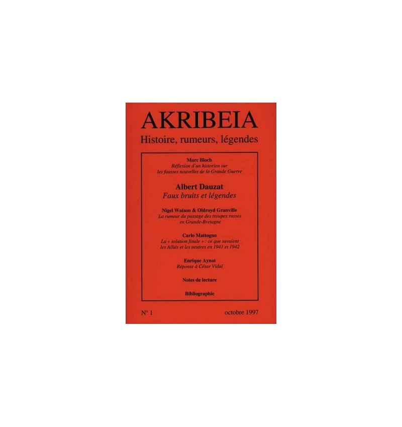 Marc Bloch : Réflexions d’un historien sur les fausses nouvelles de la guerre. — Albert Dauzat : Faux bruits et légendes (Ceux qui créent et propagent les légendes. – Naissance et diffusion des légendes. – Les caractères des légendes. – Quelques légendes caractéristiques. – Légendes utilitaires, religieuses et politiques). — Nigel Watson & Granville Oldroyd : La rumeur du passage des troupes russes en Grande-Bretagne. — Carlo Mattogno : La « solution finale », ce que savaient les Alliés et les neutres en 1941 et 1942. — Enrique Aynat : Réponse à César Vidal. — 40 pages de Notes de lecture (ouvrages de Carlo Mattogno, Xavier Casals, Enrique Aynat, Germar Rudolf, Carlos Porter, Philippe Gautier, Jean-Claude Valla, Pierre Bridonneau, Hubert Monteilhet, Paul Kuttner, Michael Shermer).